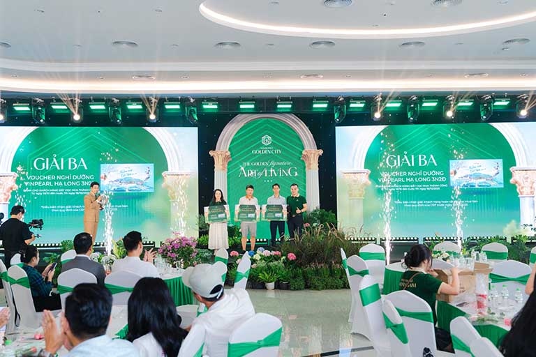 Đặc biệt nhất, chương trình bốc thăm trúng thưởng với những phần quà vô cùng giá trị, được thiết kế dành riêng cho các khách hàng đã tin tưởng sở hữu bất động sản tại Vinhomes Golden City, đã đẩy cao trào sự kiện lên đến đỉnh điểm.