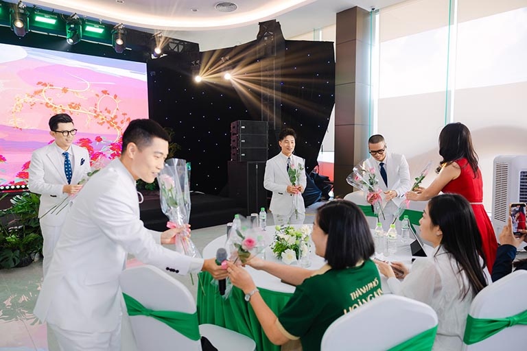Đặc biệt hơn cả, trong không khí tưng bừng của sự kiện, The Golden Signature đã khéo léo lồng ghép sự tri ân chân thành nhân dịp 20/10 – Ngày Phụ nữ Việt Nam. Để tôn vinh nửa thế giới xinh đẹp, đội ngũ tổ chức đã thân tặng những bó hoa tươi thắm, rạng rỡ nhất đến toàn thể các nữ khách hàng và đối tác tham dự. Mỗi đóa hoa được trao đi không chỉ đơn thuần là một lời chúc mừng tốt đẹp, mà còn gói trọn tấm lòng tri ân sâu sắc và sự trân trọng tuyệt đối dành cho những “Nữ cường nhân” và “Nàng thơ của Thành phố Cảng” này.
