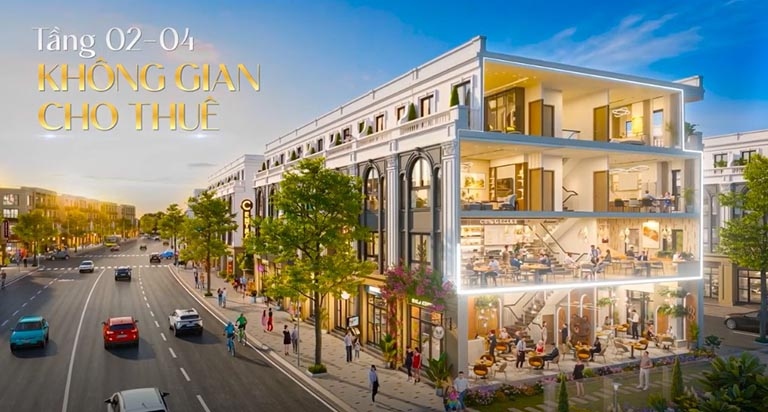 – Mặt trước – Đại lộ thương mại: Là không gian tiếp giáp với những tuyến phố nhộn nhịp, nơi dòng khách thượng lưu qua lại thường xuyên. Đây là địa điểm lý tưởng để hiện thực hóa các ý tưởng kinh doanh đẳng cấp như: quán cafe phong cách châu Âu, showroom trưng bày hàng hiệu limited, hoặc các tổ hợp chăm sóc sức khỏe chuyên sâu (Spa, Wellness Center, phòng khám quốc tế).