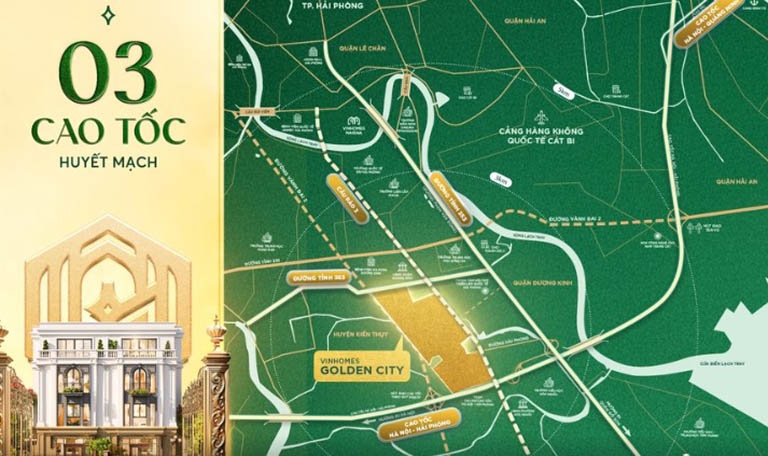 Ngoài ra từ Vinhomes Golden City bạn còn dễ dàng di chuyển đến trung tâm thành phố, sân bay quốc tế Cát Bi, và các khu công nghiệp lớn trong khu vực.